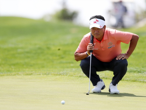 1번홀 퍼팅 라인을 살피는 최경주프로