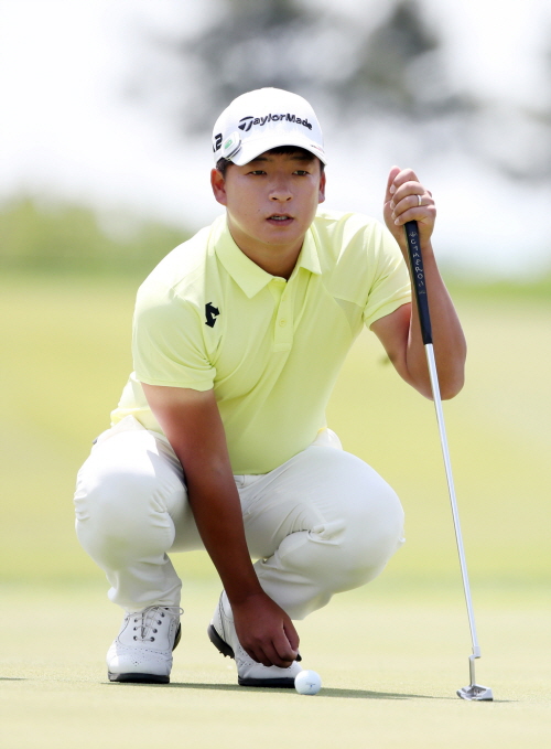 3번홀 퍼팅라인을 살피는 김승혁프로