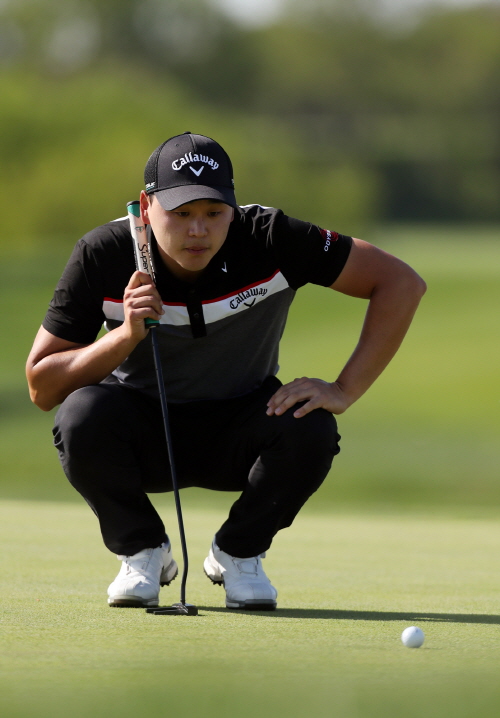 8번홀 퍼팅 라인을 살피는 김준성